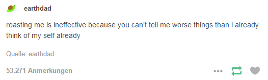 roasting me is ineffective because yen can' t tell me worse things than ialready