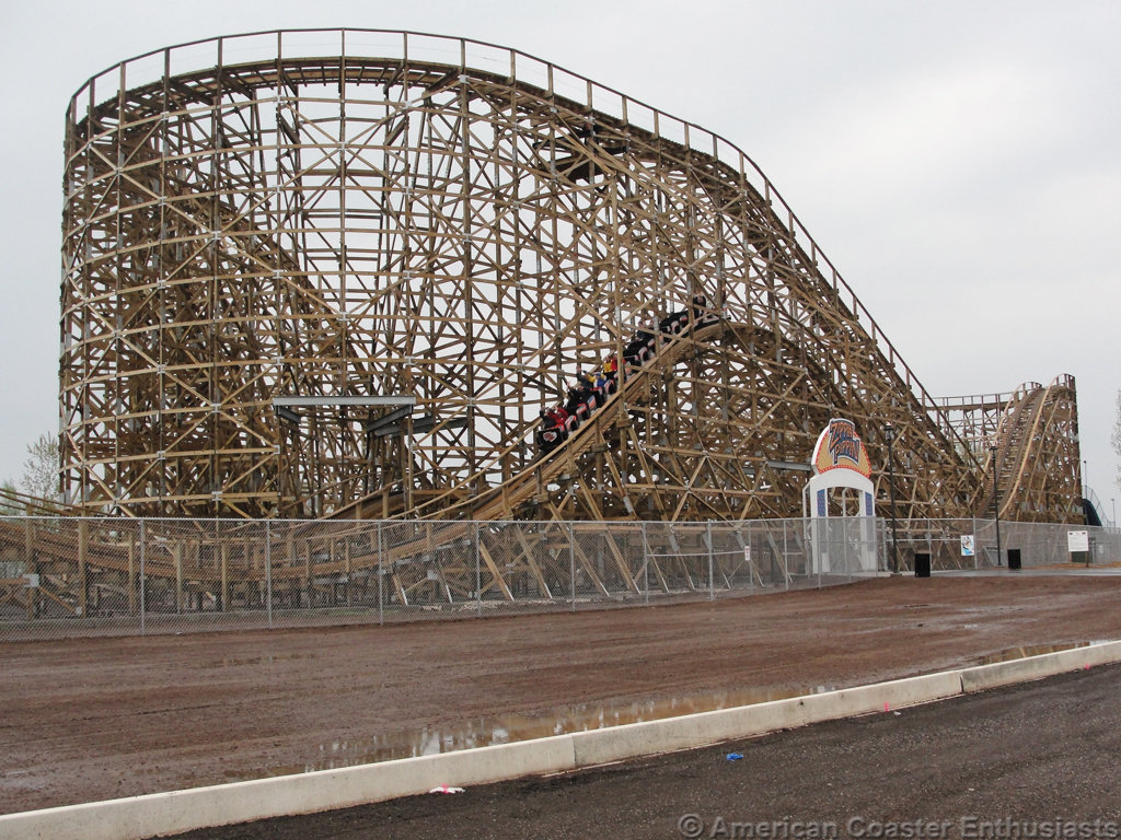 This bad boy is El Toro, at one point the tallest Wooden Coaster (also the first wooden coaster to use a cable lift hill), this bad boy boasted a 170ft. drop, and a 70* angled drop! With insane air time and insane speed throughout, this coaster sometimes gets more riders than 2 bigger rides at Six Flags Great Adventure in New Jersey! El Toro is also made by Intamin. www.youtube.com/watch?v=as4XP4Mu6-k