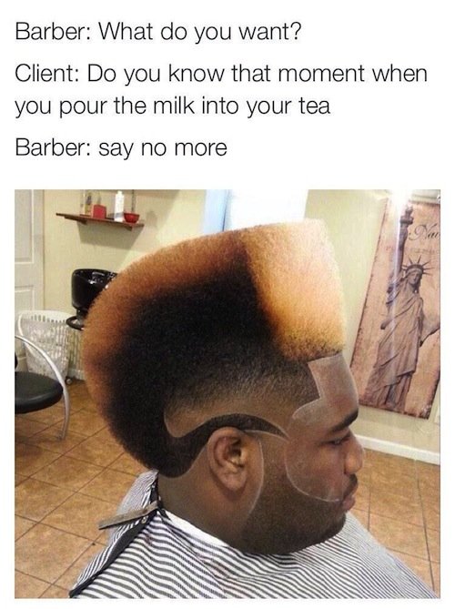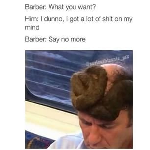 say no more Flag whatdoyawant (See more...) prev next random - Fav Favorite Comment ✖ PrevTop NextComment prev next Barber: What you want? Him:. I dunno. I got a but of **** on my mind Barber: Say no more ... +28 Views: 2839 Favorited: 1 Submitted: 01/08/2016 Share On Facebook -Favorite +Favorite Unsub from whatdoyawant Subscribe to whatdoyawant