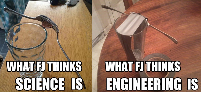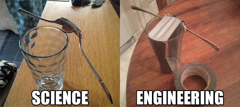 I only spent a year as an engineering student, but it has confirmed a lot of stereotypes for me. For starters, every problem can be solved with a sufficient amount of duct tape. Had some old-ass instruments that were older than the professors, mostly volt meters and **** , which were held together by duct tape. The wires were secured in place with duct tape, the panel was stuck in place with duct tape, the boxes were all rolled up in duct tape. Everything was duct tape and the damn things were somehow more accurate than the electronic ones we had.