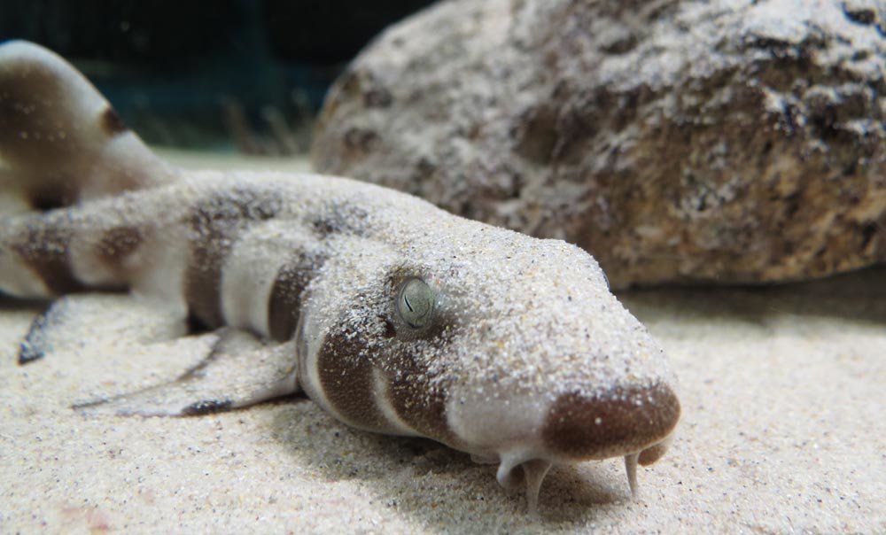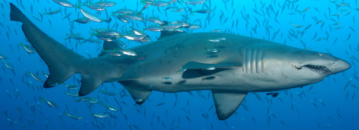 Shark ‘skin’ is made up of a series of scales that act as an outer skeleton for easy movement and for saving energy in the water. The upper side of a shark is generally dark to blend in with the water from above and their undersides are white or lighter colored to blend in with the lighter surface of the sea from below. This helps to camouflage them from predators and prey.