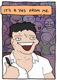Direct rip off? Is the idea that unique in the first place? Is it possible for two separate individuals to have a similar if not exact idea separate from each other? Is it a rip off if it's an accident? Or is it two creative persons arriving at the same conclusion independently? Also in the scene from that video he's knowingly singing in front of an audience. There's a ******* live band. In this comic the showering individuals reaction implies that he is taken by surprise at having exited the shower into a large studio audience.