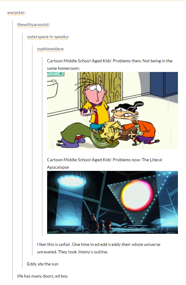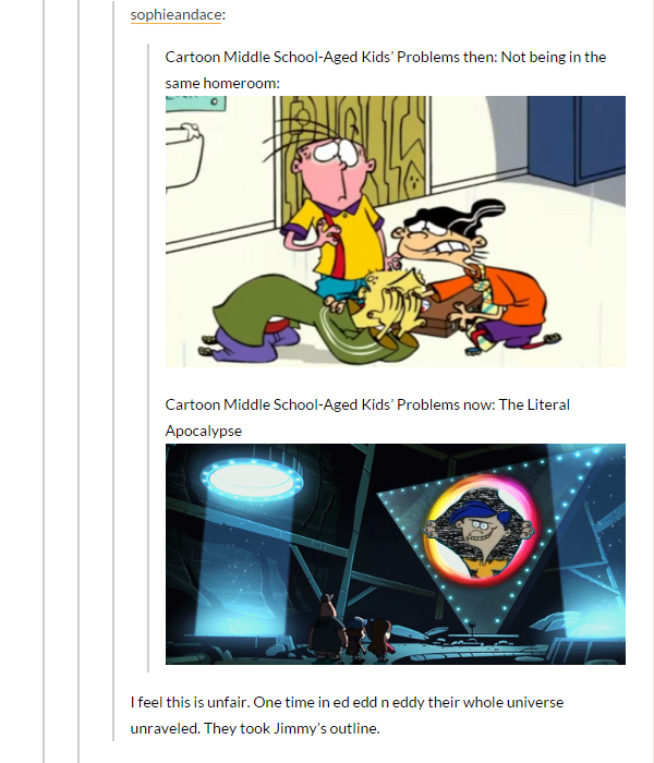 I feel this is unfair. One time in ed edd n eddy their whole universe