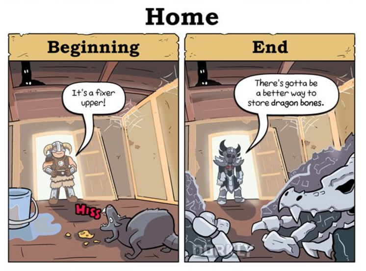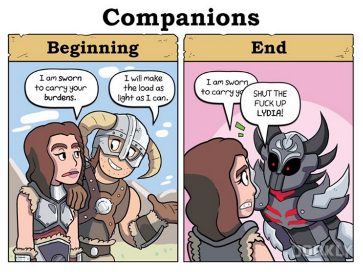 Thank you Dorkly for these totally funny and epic for the win comics about Skyrim, the greatest game in the world, that hasn't been joked about to death at every single point prior to posting these not-rehashed comics.