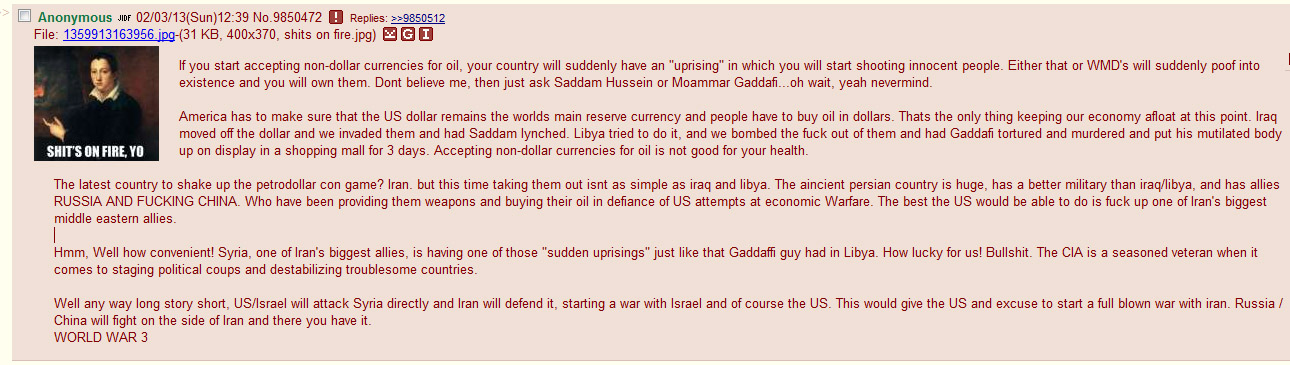 Ah yes, the infamous US oil cartel which has apparently governed all of global politics since the end of WW2. It totally wasn't at all to do with people wanting basic things like representation and for the country to not be some cheap orwellian know-off. At least try and read some BBC, Al Jazeera or hell even RT (if you're desperate) to learn about the build up.