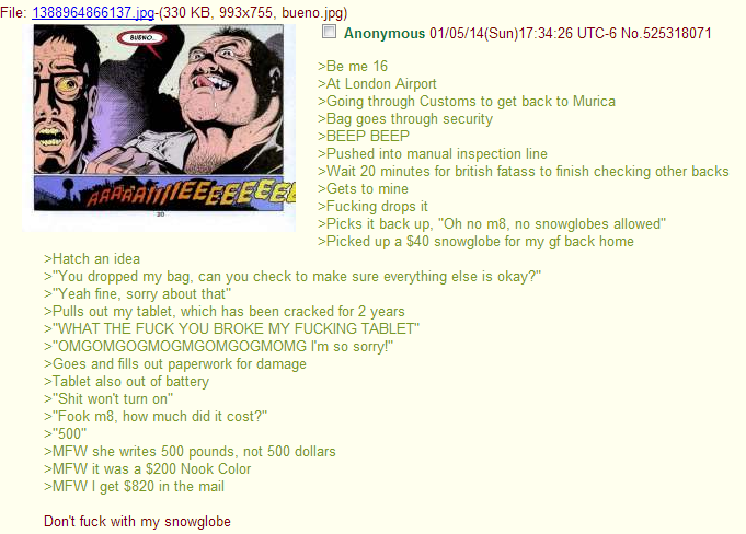 We're just aware that this is a 4chan post, and that the cardinal rule of /b/ is 'only a fool would take anything written here as fact.' It stopped being cool to point out that 4chan greentexts are fake a long time ago.