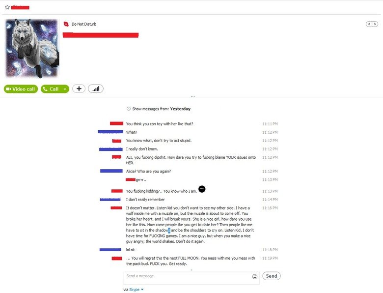 ... You will regret this the next FULL MOON. You mess with me you mess with the pack bud. **** you. Get ready. "