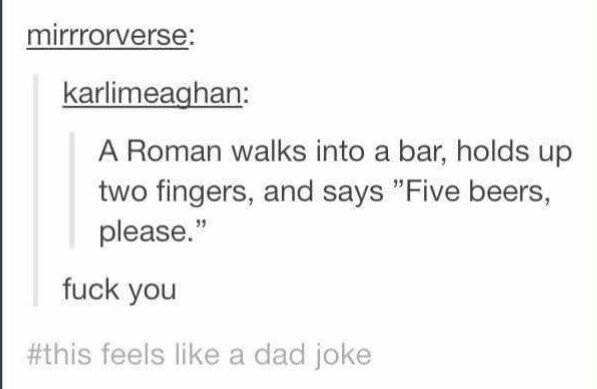 A Roman walks into a bar, holds up