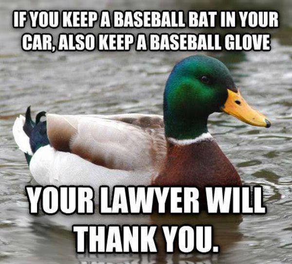 If you carry around both bat and the glove, you can just say you play baseball for fun and just happened to have a bat, which you in the heat of the moment, of course, used as the weapon. If you have only a bat, you'll have a hard time proving that you weren't carrying it with the intent to kill that someone, which would make your crime a lot worse.