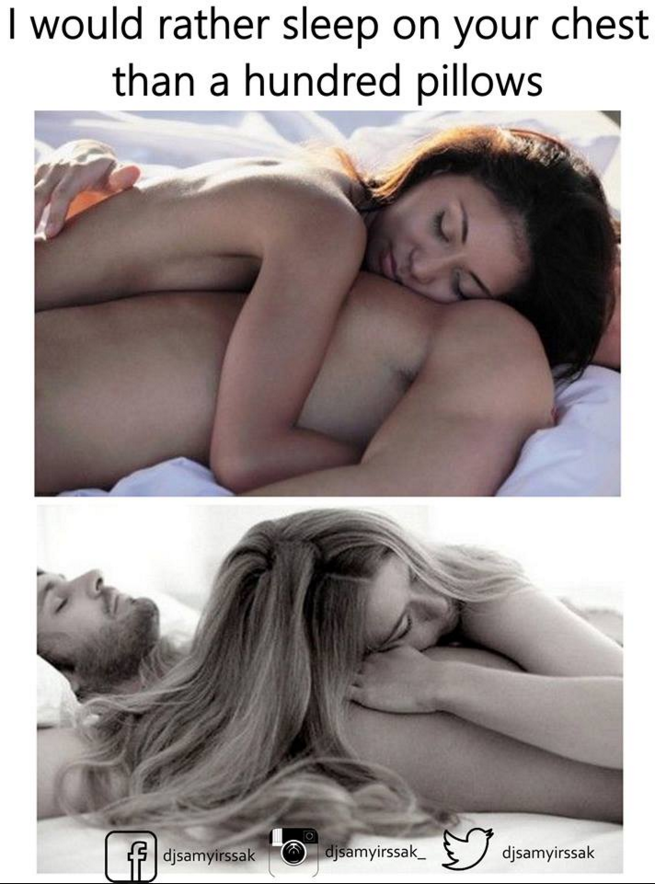 My boyfriend can't even put his head on my chest because above my boobs it's all bone but if I put my head on his chest (which is muscles and not bone) I am out like a light because it's so comfortable. So it has to either be fit guy, fat guy, or boobs with padding on the chest.