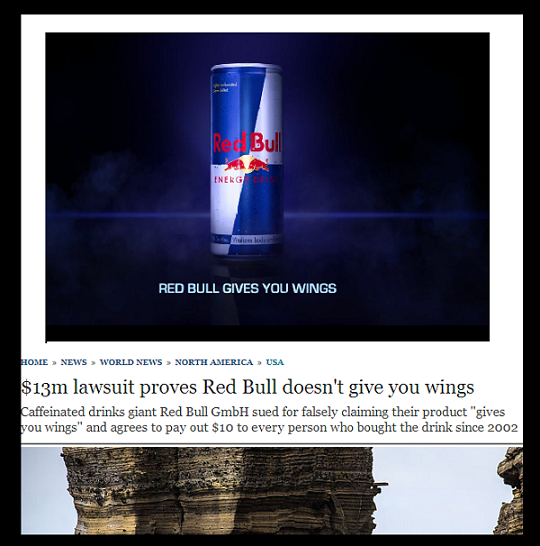 Americans are just the worst people on the planet for sueing a company on an obviously impossible promotional tag, and they mean wings as in a mental lift due to the caffeine.