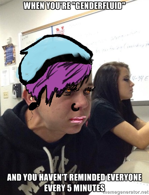 I would get it if someone who just doesn't feel like either had days like "now i feel like dressing as a girl" or "now i feel like dressing as a boy" but not changing your ******* gender day by day.
