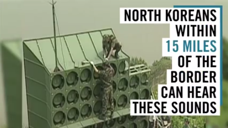 What get's me is, Best Korea tells everybody that they're the world's epitome of wealth and prosperity, but here there soldiers are, barely fed, listening to music that some "poor" country is playing on speakers that would have cost billions in slanty money