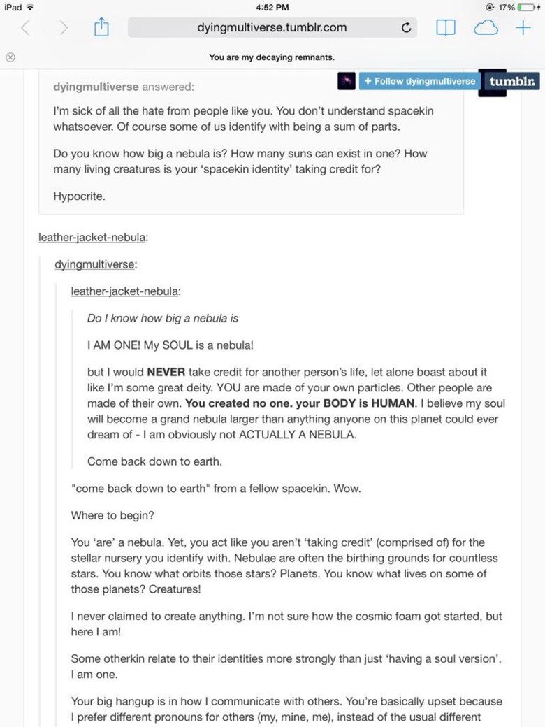 You 'are' a nebula. Yet, you act like you aren' t 'taking credit‘ (comprised of) for the