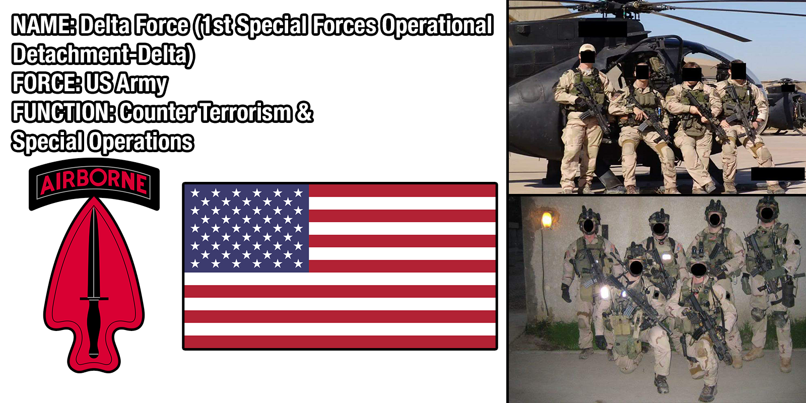 More commonly referred to as “Delta Force” by the public, Army Compartmented Elements (or ACE for short) is one of three “Tier One” forces in the world, the other two being the US Navy's DEVGRU (SEAL Team Six) and the Canadian JTF-2.