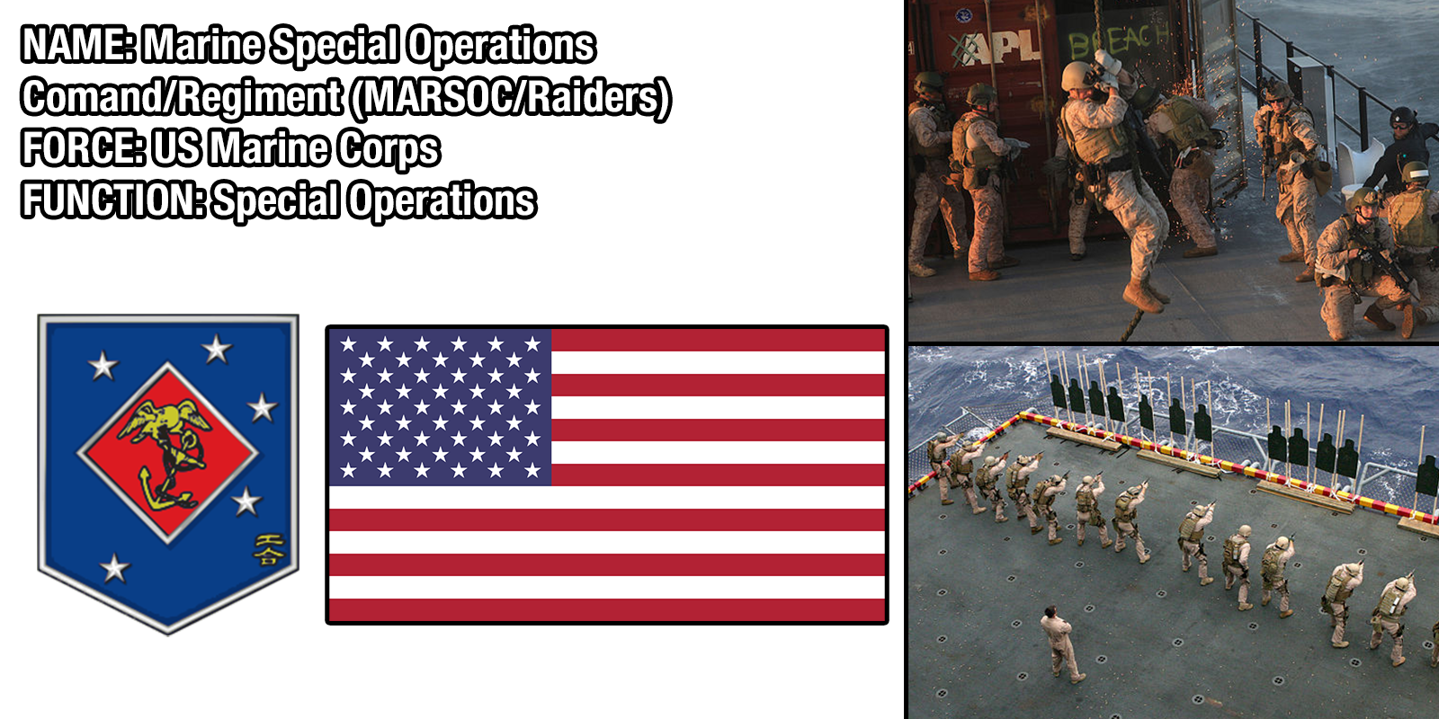 The US Marine Corps Special Forces were largely unused for the majority they have been in service, despite the fact that they are easily on par with the Army Rangers and the Navy SEALs. This is because they were not part of Special Operations Command (SOCOM), the unified special operations branch of the US Armed Forces. However, in 2006, MARSOC was created, and allowed Marines to finally participate in special operations.