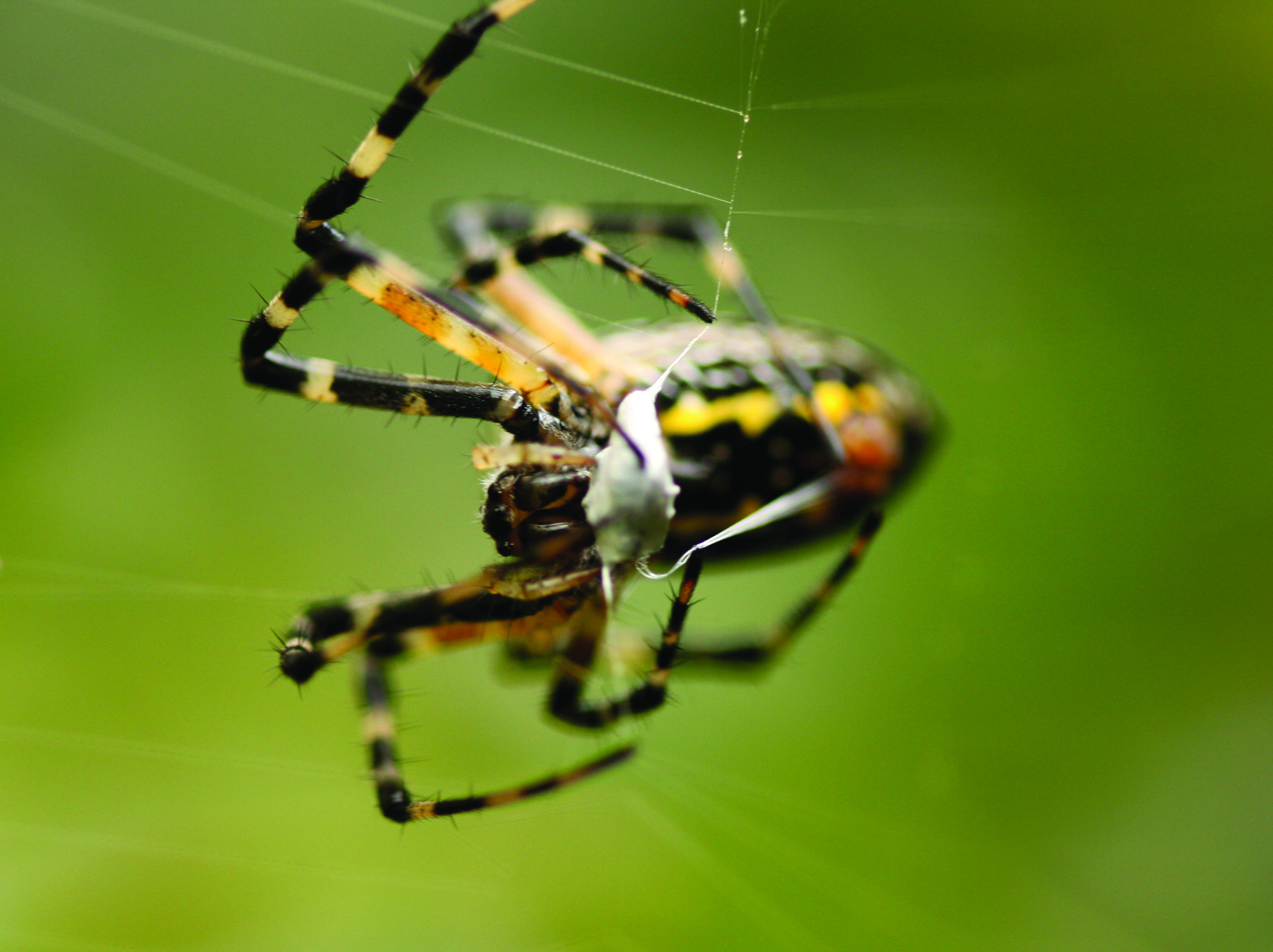 All spiders are carnivorous, Most spiders eat insects but a few of the larger species are big enough to prey on small vertebrate animals like mice or small birds. Most spiders' jaws work from side to side. They have toothed edges used in breaking up the prey during feeding. Digestion starts before any of the prey is swallowed. Some spiders inject digestive enzymes into the prey before they start breaking it up; others secrete digestive fluids as they are breaking the food up with their jaws. The partially digested food is sucked into the spider's alimentary canal (gut).