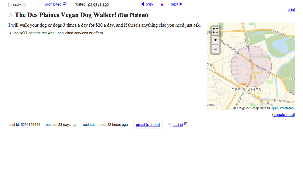 The Des Plumes Vegan Dog Walker! (Des Plaines)
