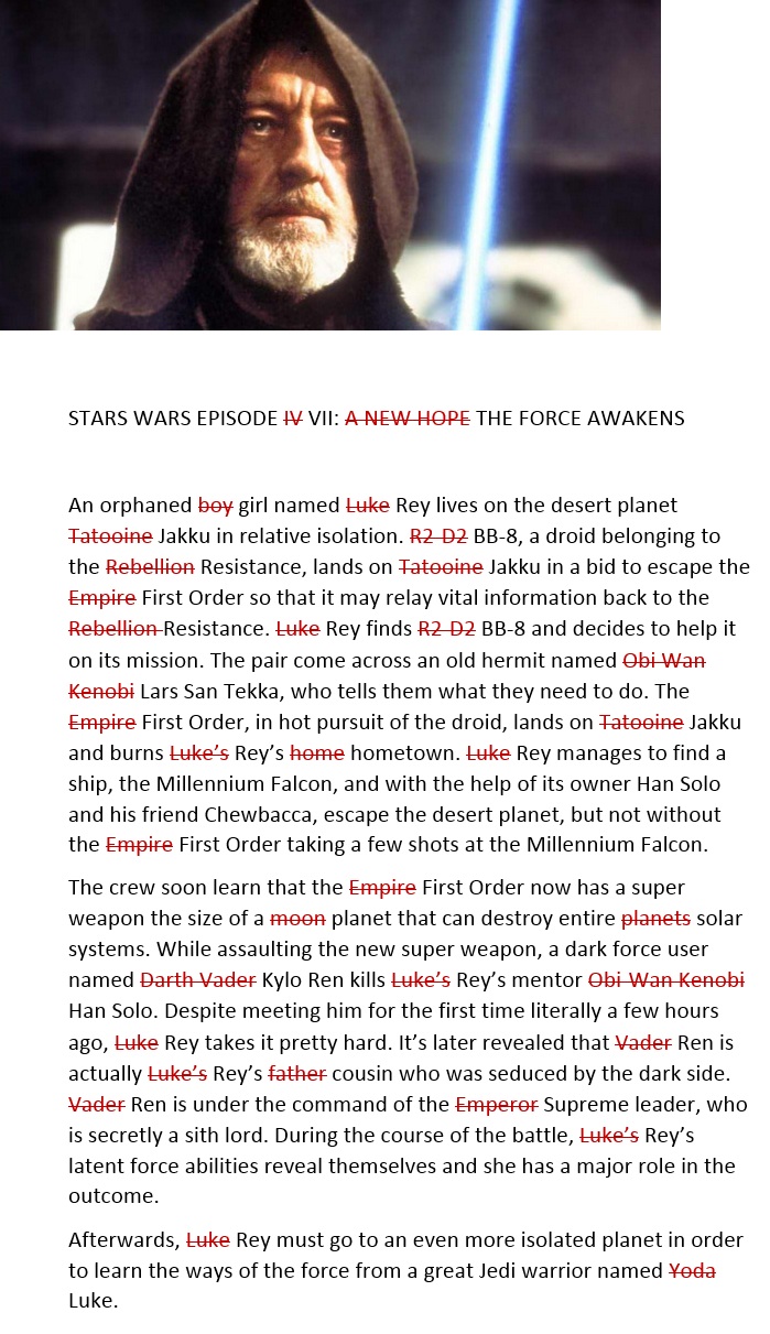 Yeah I hadn't seen this image before the movie came out, apparently some anon made it a few months ago. The entire film I sat thinking I should be enjoying it but for some reason I wasn't. I saw this picture this morning and instantly realized that it was because I watched the same god damn movie 8 hours earlier that day (went through the OT before watching TFA). I'm actually not even looking forward to the next film now. I'm going to keep my VHS special edition of the OT and that is the only Star Wars I will ever know. I'm done w the franchise.