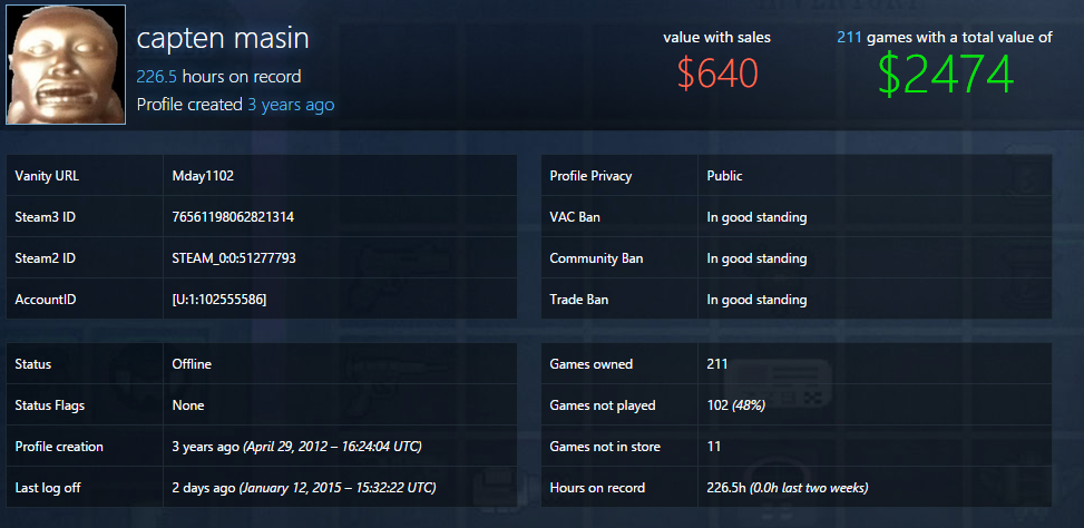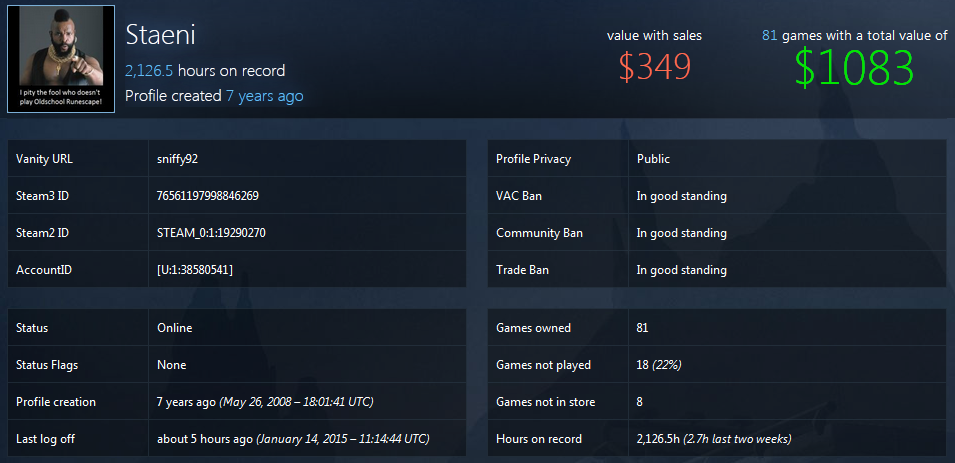 Steam Library Worth Flag Thunderrr (See more...) next random - Fav Favorite Comment ✖ Top NextComment steamdb.info/calculator/ Post your results. next Tags: gaben | steam | God | Life | Love +2 Views: 1053 Favorited: 1 Submitted: 01/14/2015 Share On Facebook -Favorite +Favorite Unsub from Thunderrr Subscribe to Thunderrr