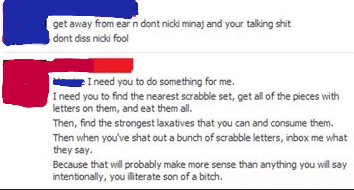 Then when you' shat out a bunch of scrabble letters, hoax me what