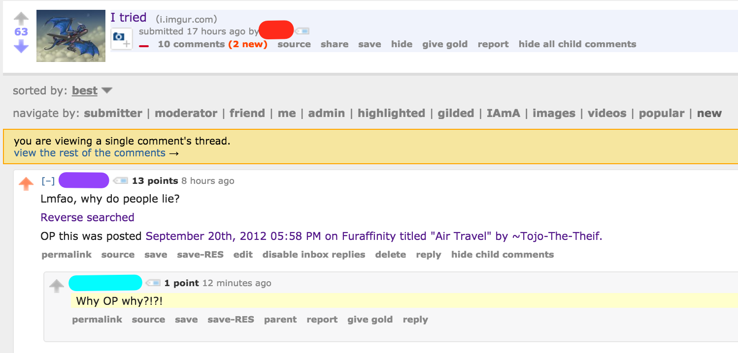 I mean, the call-outer didn't show any evidence that this image was on reddit at any point, this isn't someone being caught out, it's just an accusation.