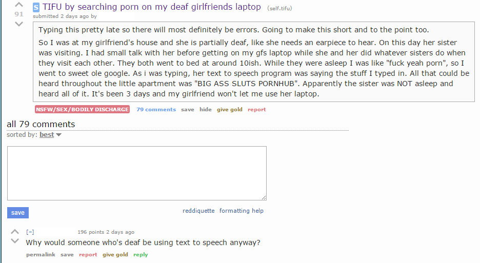 The first one said that she is partly deaf so they prob aren't living about the use of text to speech but the event prob is fake
