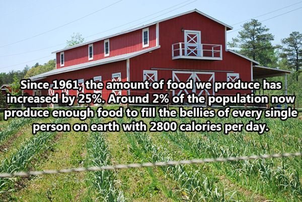 Around if it has only increase by 25%... and the population has increased by 100% in that time... then how is this 2% feeding every person a new thing... surely there is now less food per person than there was before.