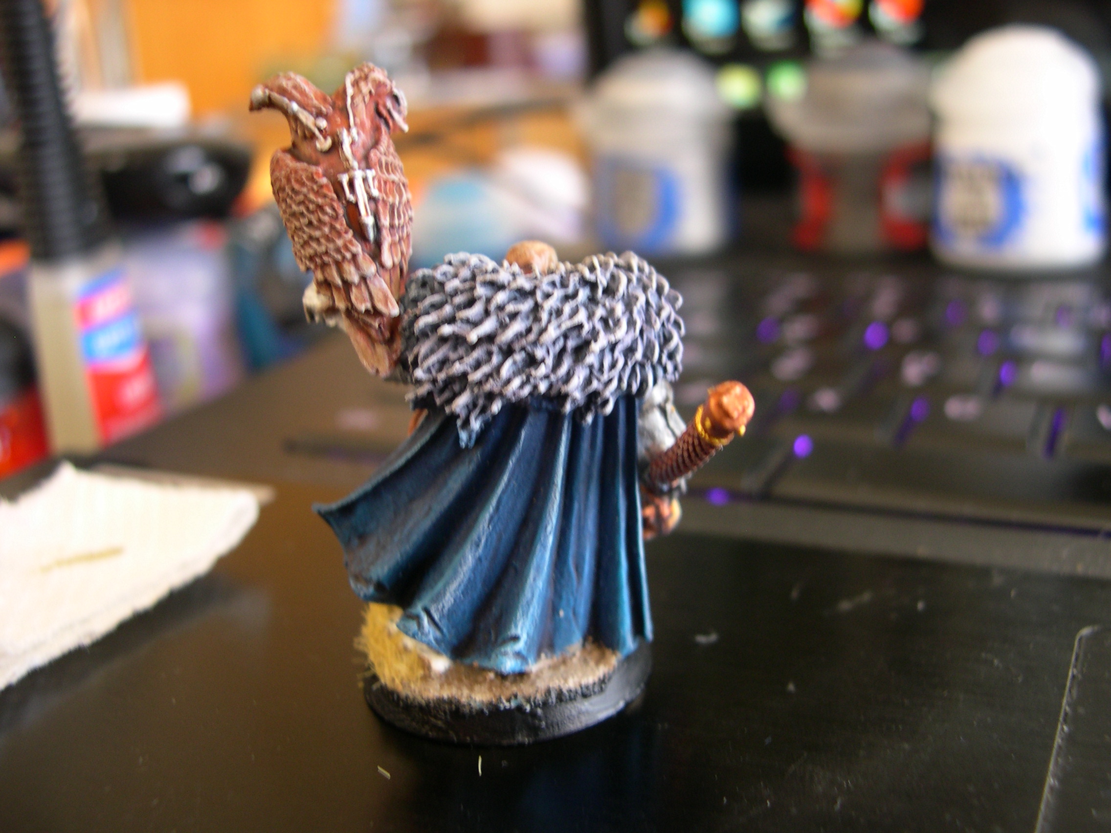 next I drybrush altdorf guard blue over all the kantor blue and drybrush white over the inked areas.