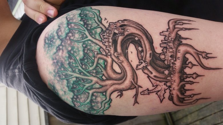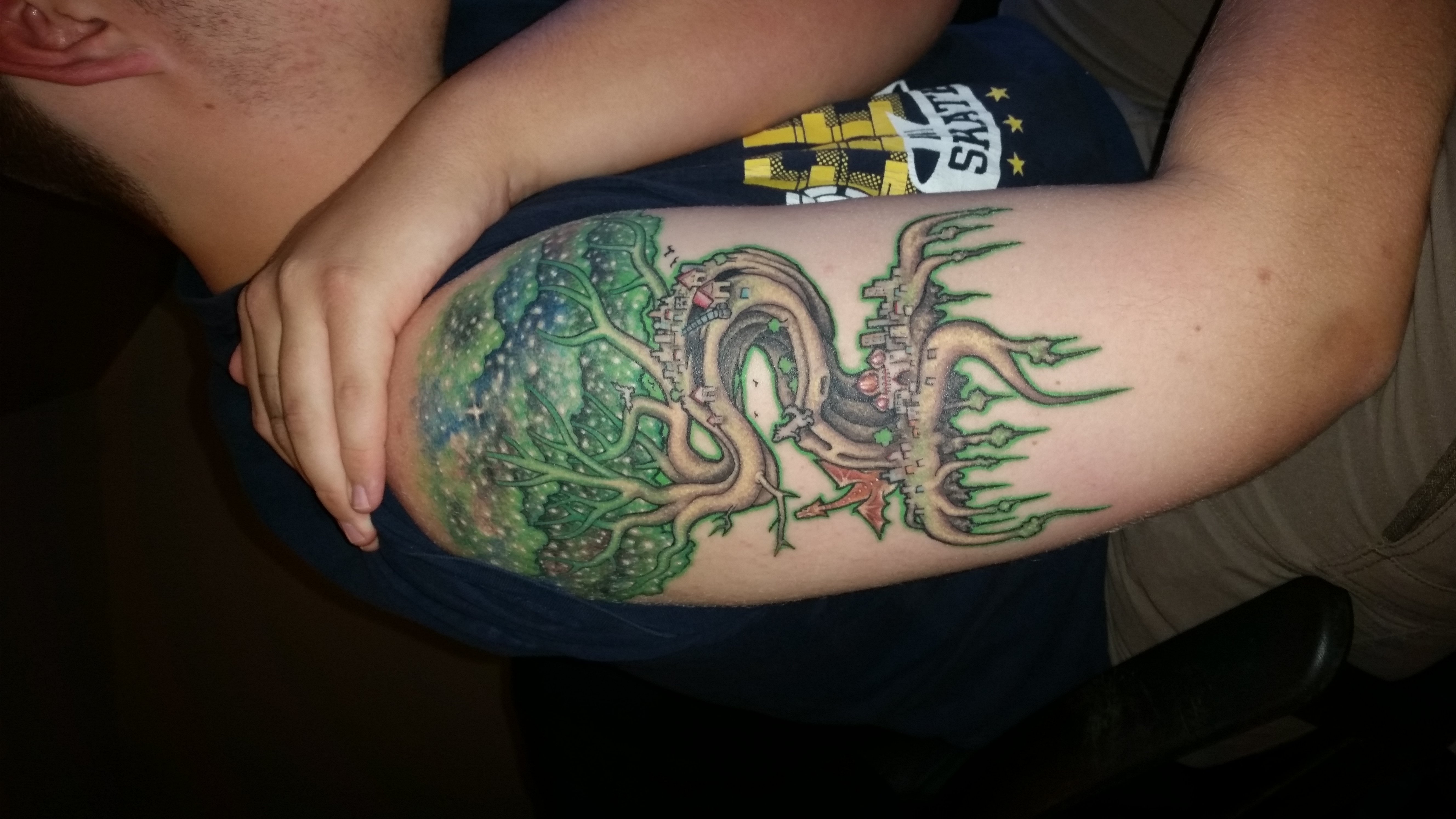 so this is the updated version more colour we specifically worked on the tree body itself(sorry for the sideways image i don't know how to fix the orientation) hope you guys llike it (or go ahead hate it, im happy with it and if youre going to get a tattoo thats what matters. also sorry the update photo doesnt look to good