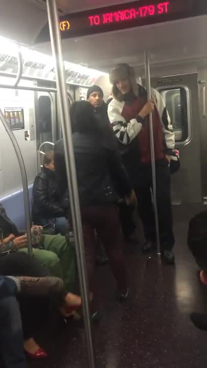 It seems that the female specimen was insulting the male's attire while her friends encouraged her to continue her restless verbal assault on the male