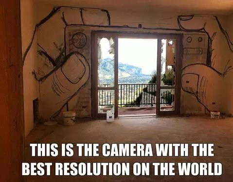 Actually, the resolution we percieve in the the world to be in would be about equivalent to a 576 megapixel camera, because our eyes can't see any detail beyond that, and the highest resolution camera in the world is 1.8 gigapixels.