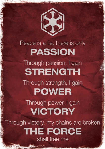 I remember way back when I read a Star Wars fanfic that reinterpreted the two codes and how they affected each Order, taking a bit of a literal view.