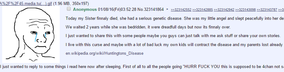 First of all to all the people going "HURR **** YOU this is supposed to be funnyjunk not sad stuff" and the guys acussing me of thumbwhoring, just **** you :^)