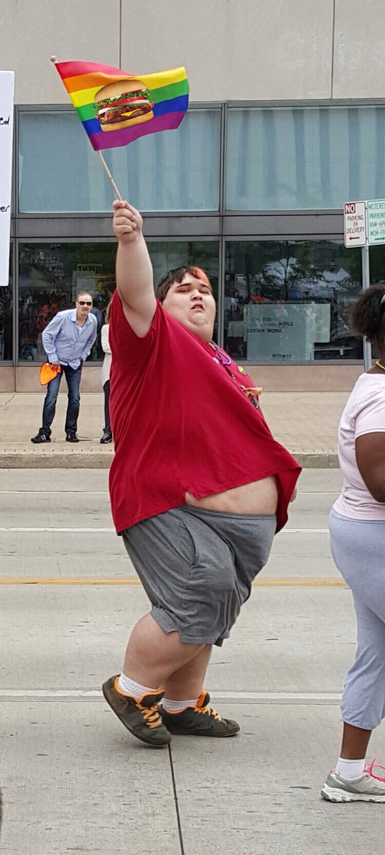That thing exemplifies disgust to me. Look at the dyed hair, disgustingly fat body, tons of obnoxious **** (beads, badges, the flag), and the vacant retarded look. I've never hated anything more just from looking at a picture, except maybe pic related. As is the case with Smellody here, I will refrain from using pronouns to refer to whatever it is, because I honestly don't know what gender it is.