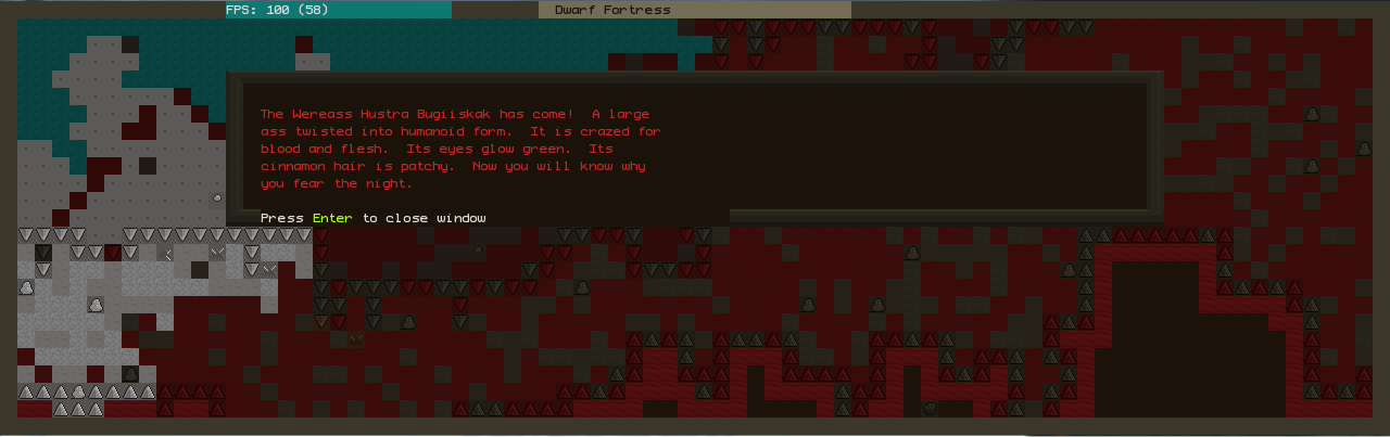 The Hero That Armok Deserves Flag kungfuchedder (See more...) prev next random - Fav Favorite Comment ✖ PrevTop NextComment (Enlarge) Game is Dwarf Fortress. This thing invaded my fort. It ate my hunter after he tried to stop it by himself. www.bay12games.com/dwarves (Enlarge) It seemed pretty proud of itself. prev next Tags: dawrf fortress | huge | ASS | hungry | for | dwarf | cock +2 Views: 750 Favorited: 0 Submitted: 12/30/2015 Share On Facebook -Favorite +Favorite Unsub from kungfuchedder Subscribe to kungfuchedder