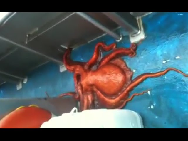 Pulpo escapa de un barco por una rendija diminuta.