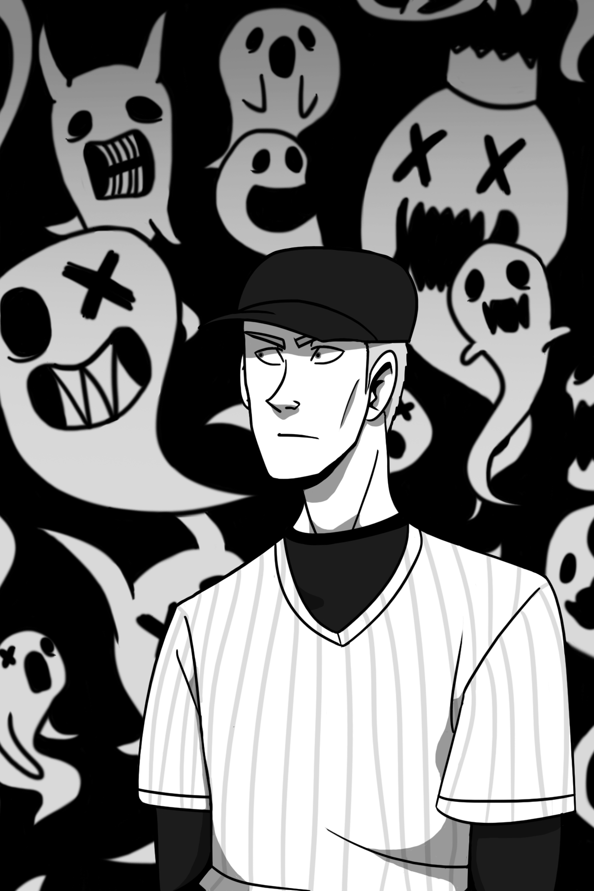The man carrying the bat, though, is a more obscure reference to a series. He is the main character of the game OFF, an rpg adventure indie game made in 2008. He's known as The Batter. The more you know