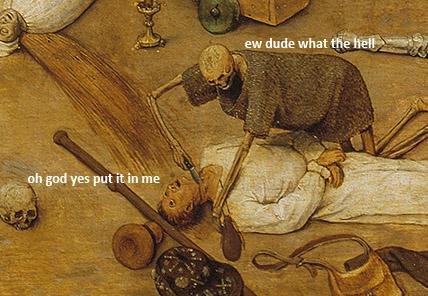 The Triumph of Death Flag thumpingbear (See more...) next random - Fav Favorite Comment ✖ Top NextComment Have at it, FJ. Shamelessly stolen from www.dakkadakka.com/dakkaforum/posts/list/90/645412.page#8107755. (Enlarge) next Tags: oh | God | please | no +20 Views: 2256 Favorited: 1 Submitted: 09/20/2015 Share On Facebook -Favorite +Favorite Unsub from thumpingbear Subscribe to thumpingbear