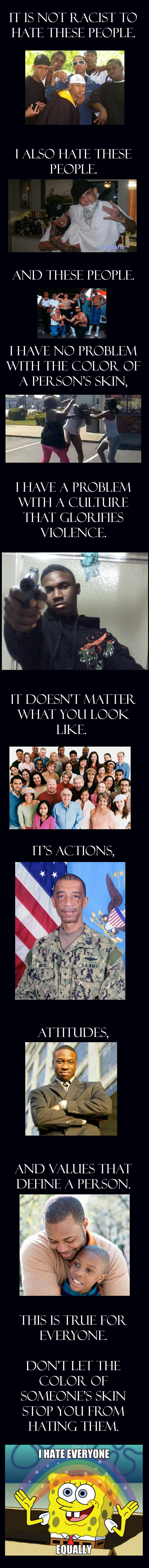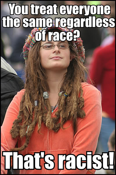 The whole idea of "Color Blindness" where races don't exist and we're all part of the human race is stupid. Of course race exists, it just shouldn't affect how you see the person you're talking to.