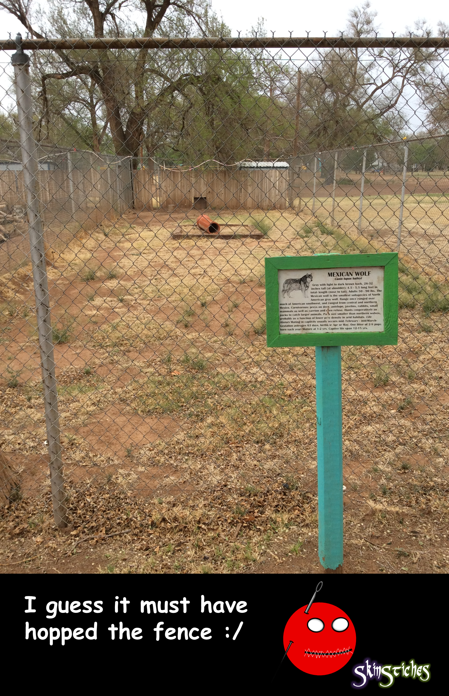 The Zoo Flag skinstiches (See more...) next random - Fav Favorite Comment ✖ Top NextComment As you can probably tell, this zoo was not very amazing. It took 45 minutes to see everything. That was with children in the group. next Tags: mexican | Wolf | hopped | fence +14 Views: 1900 Favorited: 0 Submitted: 04/23/2014 Share On Facebook -Favorite +Favorite Unsub from skinstiches Subscribe to skinstiches