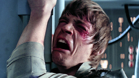 Well he was in an awful accident between the filming of Episodes 4 and 5 and got very rudimentary 1970's reconstructive surgery on his nose and face to fix this, and I think that may have something to do with it.