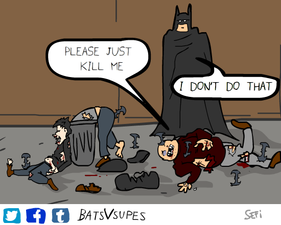 never understood that batman logic, batman doesnt kill yet all the goons who fail to kill batman are going to get killed by their superiors anyways, or i guess he just doesnt care as long as he doesnt kill them himself