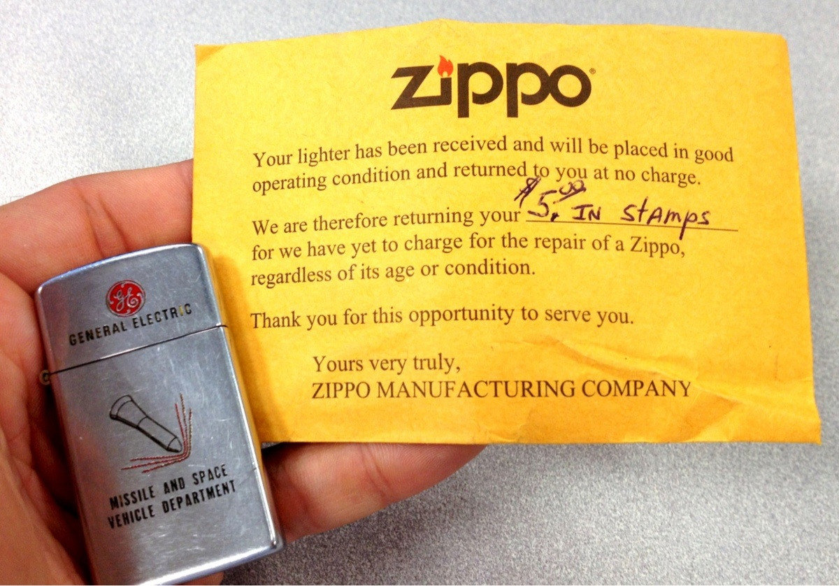 for we have yet to charge fol: t) repair of a Zippo',