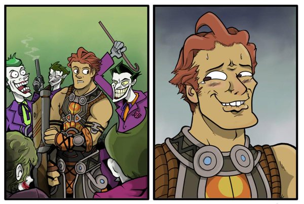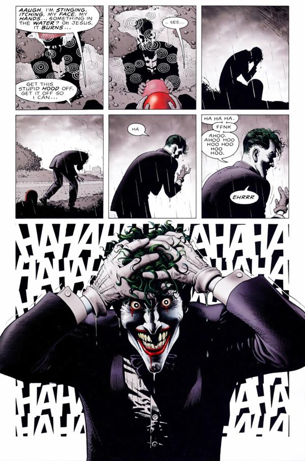 The whole 'I don't kill because I'd become a psycho' idea is such ******** it hurts, even joker pointed it out to him. Though batman has never killed anyone intentionally, he has allowed villains and thugs to die without trying to help them. One instance is in the new 52, joker has taken over a train and batman is on top of it, fighting some thugs. One of them a gun pointed at batman and behind him a low bridge is coming up quick. Batman doesn't even say 'look out behind you', he just lets the dude get smacked by the bridge, only covering his face so the blood doesn't hit him. Despite that, time and time again, Batman has gone out of his way to SAVE joker anytime he accidentally loses his footing off o a building.