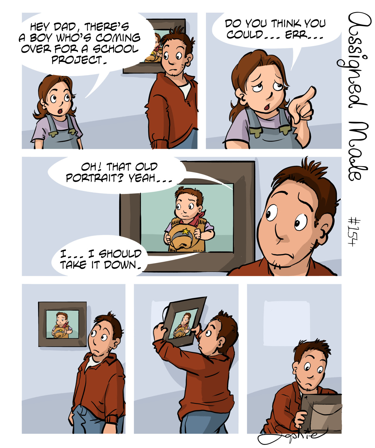 **sqman used "*roll picture*"** **sqman rolled image**Don't overthink this comic too much. The author is a very... special kind of SJW tranny. She stated multiple times that clothes shouldn't be gendered, and yet there were strips showing the self-insert being worried that wearing boyish clothes will invalidate her as a girl.