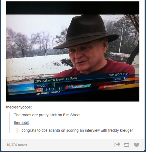 fun fact: My great uncle's name is Freddy Krueger, he grew up on Oak street and is like the 4th Freddy Krueger in my family. His son, Freddy Krueger, is a world champion water skier, he currently holds the world record for the distance jump. Also he is really cool