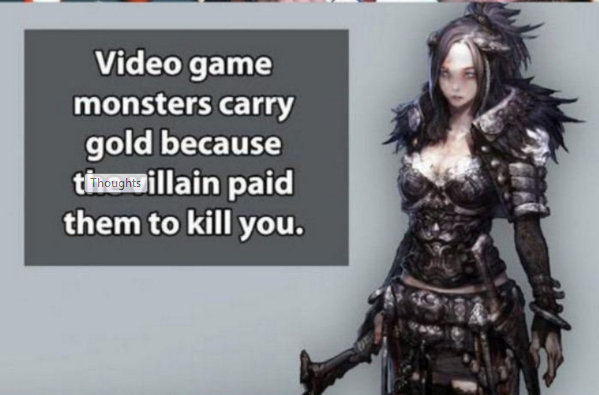 All I could think about with the video game monsters is some of the Draugrs in Skyrim got ****** ripped off after getting paid 2-3 gold to take down the dragonborn. Some of them didn't even get paid at all.