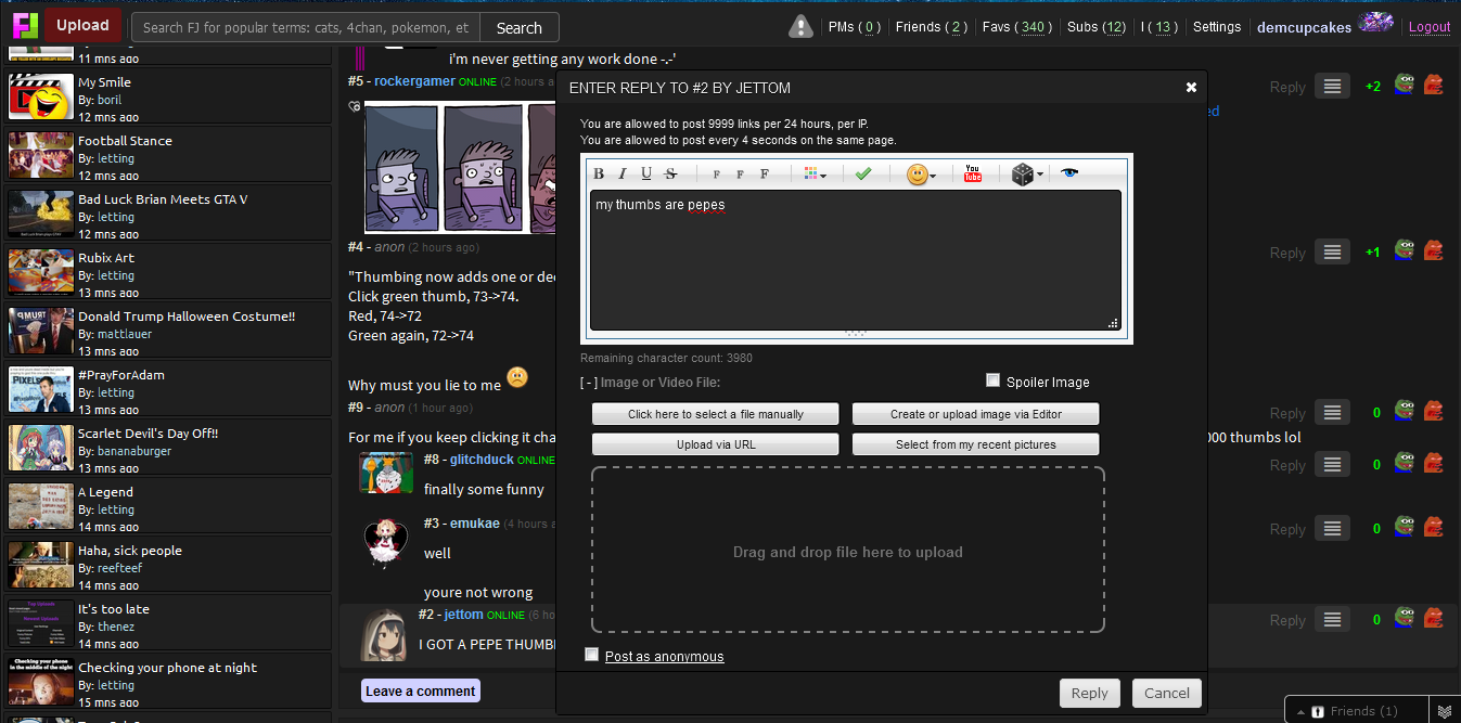 Why do people thumb up this cancer? I mean sure it was funny at first but it's getting really old "gibe thumbs for (insert dumb reason)" or "someone fists your ass if you thumb now WOAH!"