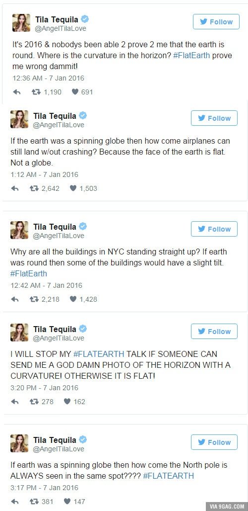 It' s 2016 at nobodys been able 2 brave 2 me that the earth is